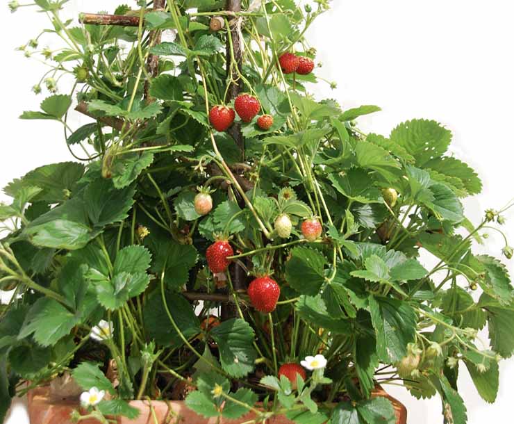 - Om du binder upp jordgubbarna med stöd kan de växa upp till minst 1,20 meter