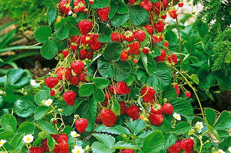 Denna nya sort kan klättra upp till minst 1,20 meter. Den är fylld av fina jordgubbar fem månader om året. På den här höjden kan du plocka stora jordgubbar fulla av en härlig traditionell smak, utan att smutsa ner dig. Odla dem i trädgården eller i kruka på balkongen.