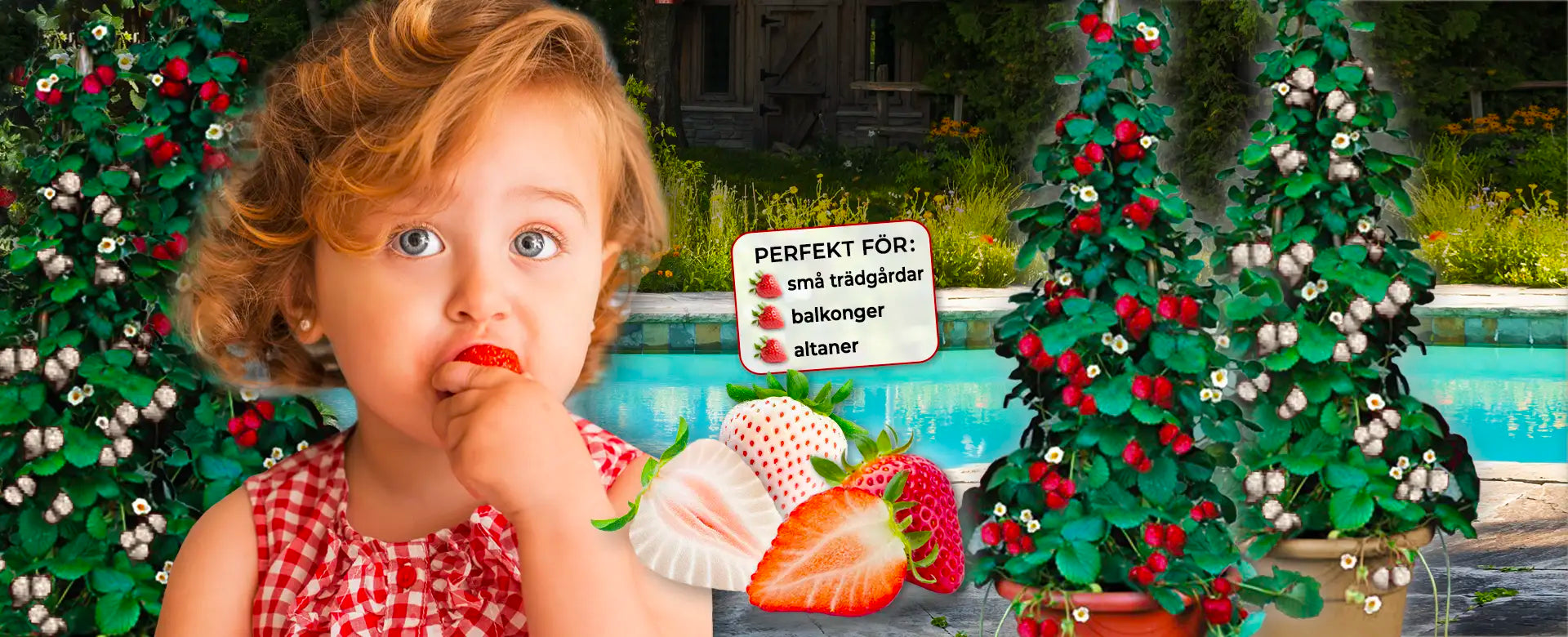 Föreställ dig barnens glädje när de enkelt får plocka stora söta bär, mogna, rena och utan jordrester, från dina klättrande jordgubbsplantor. Ända fram till den första frosten, långt efter den normala säsongen, kan du plocka fantastiskt smakrika jordgubbar, och år efter år fortsätter de att ge en otroligt fin skörd av stora och läckra bär.